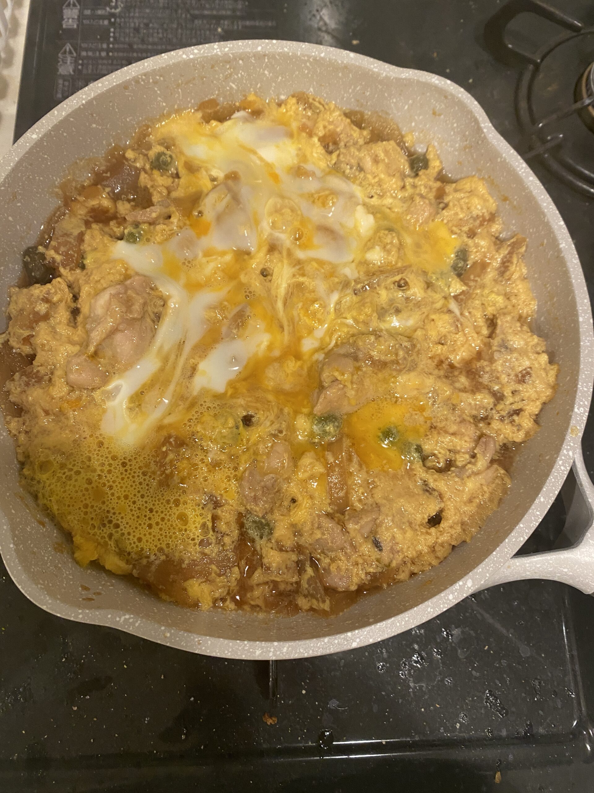 Je me suis essayé à la cuisine japonaise avec plus ou moins de succès pour ce plat d’oyakodon (qui signifie littéralement « bol de riz parent/enfant », car il y a du poulet et des œufs !). Je vous assure que le goût était plus convaincant que l’apparence !