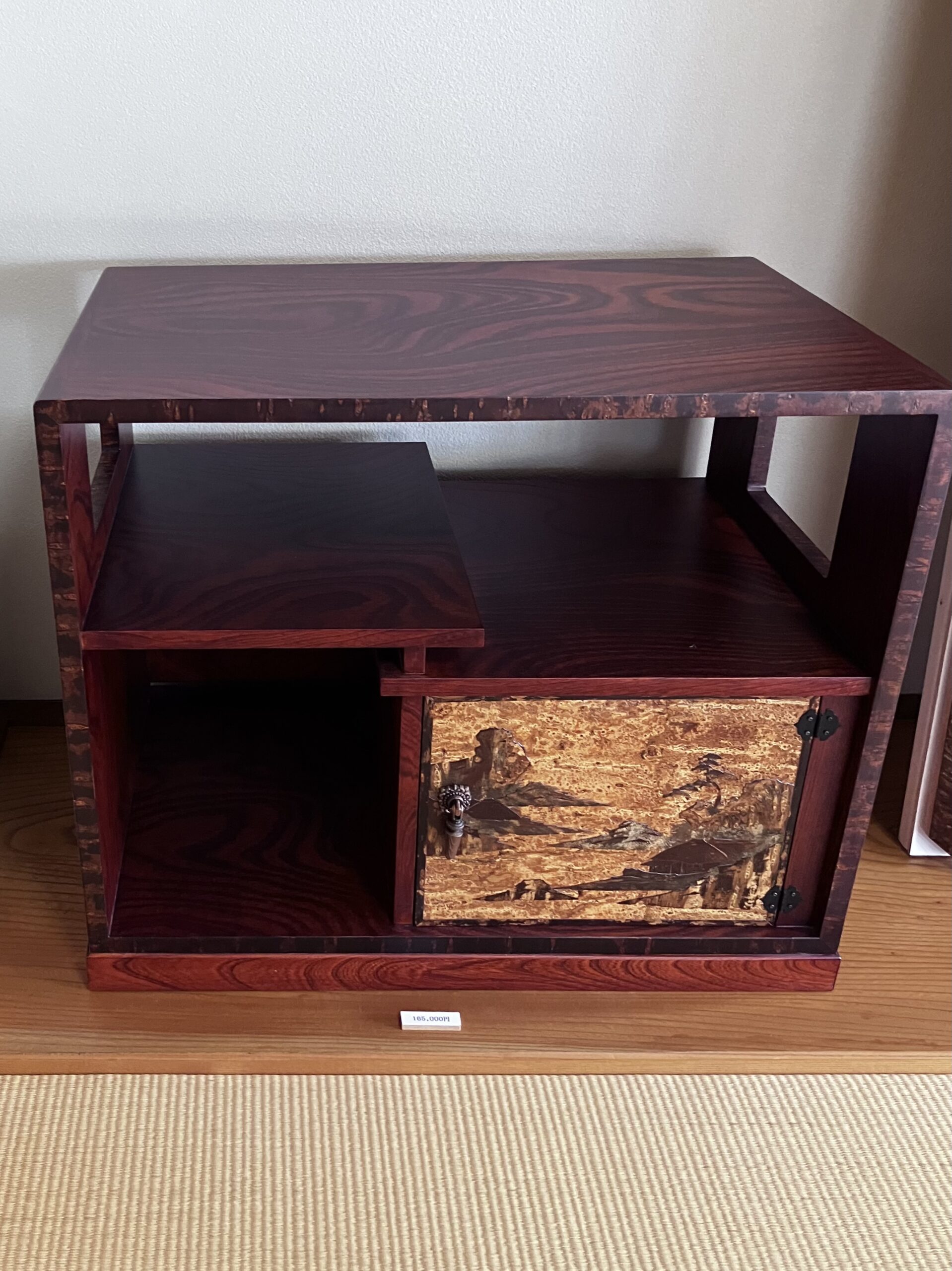 Avant de rentrer, nous avions décidé de nous rendre à Kakunodate. Il s’agit d’une ancienne ville de samouraïs qui a su préserver tout son quartier historique. En effet, il n’y a eu ni incendies ni séismes qui auraient pu justifier la disparition de ce quartier. Nous avons donc pu parcourir certaines de ces vieilles demeures. En somme, une vraie plongée dans l’histoire japonaise. Ne serait-ce qu’avec certaines fenêtres et portes, nous pouvions situer l’époque et l’originalité architecturale, à savoir les époques Edo et Meiji. En effet, ces ouvertures en accordéon étaient présentes afin de prévenir tout incendie et empêcher le feu de rentrer. L’une des plus grandes découvertes de cette ville fut une boutique artisanale en marge du quartier historique. Ce magasin proposait à la vente du mobilier et des accessoires faits avec la technique du kabazaiku. Il s’agit de superposer plusieurs couches d’écorce de cerisier pour créer des accessoires du quotidien comme des boîtes à thé ou bien des meubles. J’ai failli craquer pour un meuble qui me semblait parfait pour y mettre ma platine ! Finalement, les difficultés logistiques et le prix du transport jusqu’à la France m’ont convaincu de ne pas le prendre. Mais qui sait ? Peut-être ai-je conservé le contact de ce magasin…