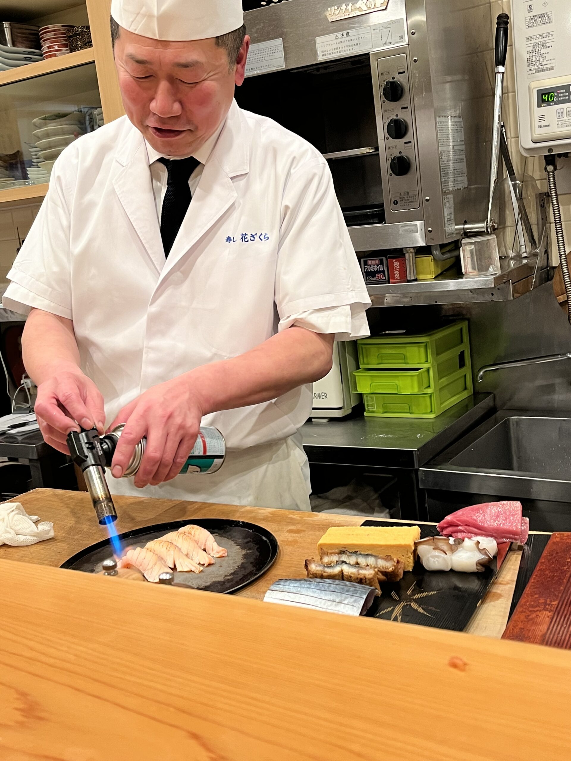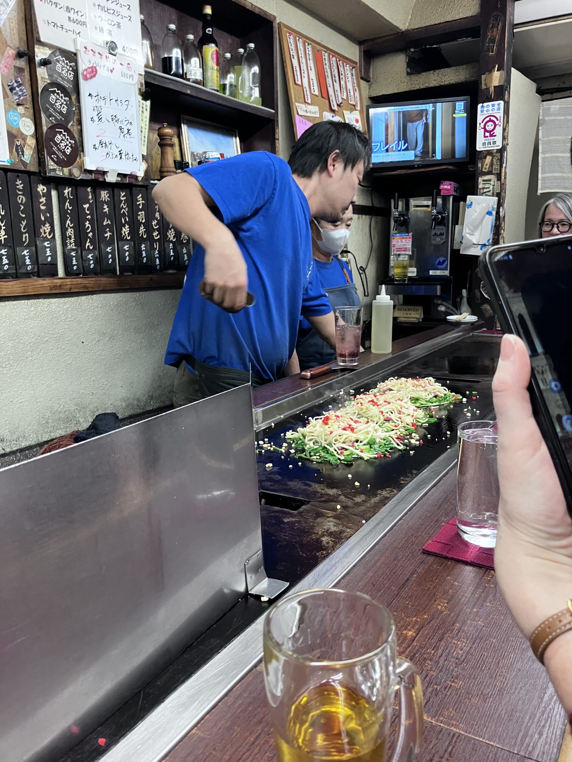 Je leur ai aussi présenté plusieurs restaurants que j’affectionne, dont certains déjà évoqués dans mes précédents articles. À Kyoto, nous sommes retournés dans le restaurant familial d’okonomiyaki où le chef m’a dit que je ressemblais énormément à ma mère, tout comme lui ressemble à la sienne ! Sa mère était là, et nous avons donc pu confirmer la ressemblance des traits, de génération en génération. J’avais également réservé le restaurant de sushis d’Osaka où j’avais emmené Théodore en juillet. Je vois encore papa savourer, les yeux fermés, ce qu’il savait être l’un des meilleurs sushis qu’il avait goûtés jusqu’alors.